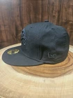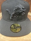 The product is a Detroit Lions New Era 59Fifty Fitted Hat Cap in size 7. It is a black on black hat designed for men and is a NFL Football accessory.