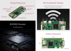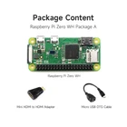 Overview This development kit includes: the Raspberry Pi Zero WH (built-in WiFi, pre-soldered headers), and some most basic components you may need to get going with your Pi Zero: Mini HDMI to HDMI Adapter, Micro USB OTG Cable. Raspberry Pi Zero WH Features Broadcom BCM2835 1GHz ARM11 single-core processor 512MB RAM Added wireless connectivity 802.11 b/g/n wireless LAN Bluetooth 4.1 Bluetooth Low Energy (BLE) 40PIN pre-soldered GPIO headers Micro SD card slot Mini-HDMI port (1080p60 video output) Micro-USB power Micro-USB OTG port CSI connector Composite video header Composite reset header Dimension: 65mm x 30mm x 11.6mm PACKAGE CONTENT Raspberry Pi Zero WH x1 Mini HDMI to HDMI Adapter x1 Micro USB OTG Cable x1 This development kit includes: the Raspberry Pi Zero WH (built-in WiFi, pre-soldered headers), and some most basic components you may need to get going with your Pi Zero: Mini HDMI to HDMI Adapter, Micro USB OTG Cable. Broadcom BCM2835 : 1GHz ARM11 single-core processor Added wireless connectivity : 802.11 b/g/n wireless LAN;Bluetooth 4.1;Bluetooth Low Energy (BLE) Mini-HDMI port (1080p60 video output) 40PIN pre-soldered GPIO headers