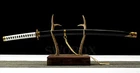 Items Description: Swordsmith: 田中义郎 Package: 1sword + 1random bag Material: 1060 carbon steel Overall: 40.9''/ 104cm Nagasa: 28''/ 71cm Nakago: 10.6''/ 27cm Shape: Shinogi-Zukuri Hardness(HRC): 56 Blood Groove: with bohi Hamon: with hamon Color: No color Blade Edge: Hand polished be sharp Handle: solid wood wrapped Width(Near Kissaki): 0.91''/ 2.3cm Width(Near Habaki): 1.26''/ 3.2cm Ito&Sageo: Japanese synthetic silk Saya: Hard wooden with lacquer work finished Kissaki Shape: Chu-kissaki Crafts: Fully hand forged, water quench treatment,hand-polishing, etc. Additional Service About us Sword Noun Explananation Delivery details Sword maintenance Additional Service It's free for engraving English words, Chinese Characters and Japanese Kanji , etc. You need pay extral $20-30 for engraving patterns. Sharpness Most of our blades are sharp. We can also make the blade unsharpened for free if you require. Matching Swords Set If you buy one katana, we can make a matching Wakizashi or Tanto for you. The price varies from different swords. Please contact us if you need make custom matching set. About us We have our own sword-casting factory. The factory is located in Longquan, a small town with a long history of sword-casting in China. Most of the famous Swords in China are made there. Rich raw materials, skilled technology, traditional sword casting technology from generation to generation. Manual production really takes a lot of time. We will prepare most products in advance ,and arrange delivery within about a week. However, sometimes the delivery time is delayed due to weather or raw materials,etc. we hope to get your understanding. Feel free to contact us to inquire about the status of your order. Each handmade sword is unique. Our swords are great for gifts or for your own collection. Our swordsmithing master makes every sword attentively, hope you can feel our sincerity. We will also give you the best customer service, any questions please feel free to contact us. Sword Noun Explananation Quenching After the blade has been shaped, the sword would be quenched. We quench our swords in either water or oil. Water quenching produces a tougher edge which can also be hardened further more using clay. Blades quenched in oil are still considerably hardened and do have superior flexibility compared to a water quenched blade. Folded Steel : In the forging process , the most useful process is the folding, where the metals are forge welded, folded, and welded again, as many as 124 times(15 times is the best). The folding removes impurities and helps even out the carbon content, while the alternating layers combine hardness with ductility to greatly enhance the toughness. The less impurities, the harder and sharper the blade will be. We have done cutting tests on the blades. it can cut bamboo(young bamboo tree), grass mattings and slice paper(The blade should be tilted at 45 degrees). Clay tempered : To maximize both the cutting edge and the resilience of the sword spine, a technique of differential heat-treatment is used.The sword is painted with layers of clay before heating, providing a thin layer or none at all on the edge of the sword, ensuring quick cooling to maximize the hardening for the edge.A thicker layer of clay is applied to the rest of the blade,causing slower cooling.This creates softer,more resilient steel, allowing the blade to absorb shock without breaking. About 1095 carbon steel : The best quality of high carbon steel is at 1095, the carbon content was 1.03%, and the element contains a small amount of chromium, molybdenum, vanadium, after heat treatment can reach HRc58-60 hardness, toughness is very good, but not resistant to rust, more be applied to traditional european-style hunting knife, large cutting knife and military dao. Such as the United States during world war ii "KA - BAR" saber is in 1095 as the blade material. Kobuse : The vast majority of modern katana and wakizashi are the maru type which is the most basic, with the entire sword being composed of a single steel. The kobuse type is made using two steels, which are called hagane (edge steel) and shingane (core steel). Steel of different materials is forged and welded together to hammer the basic shape of the sword. This allows the overall blade to have a higher toughness and absorb a lot of impact. Reducing the possibility of breaking or bending to some extent. Makes the blade not only has high hardness, but also has super toughness Delivery details a) Import duties, taxes and charges are not included in the item price or shipping charges . These charges are the buyer’s responsibility. b) If you do not receive the package, or the package is damaged during transportation. We'll take care of it. Please feel free to buy. c) If it is mentioned in the product description that the package includes the sword bag or sword holder , the style will be random. The sword holder or sword bag on the ebay picture is the props we use for shooting. If you really like a style, please contact us before buying. d) If you have any problem after recieve the package (wrong size, wrong style, etc.). We always provide you with the best after-sales service. Please give us a chance to help you before you give us a bad feedback . Thank you very much! Sword maintenance