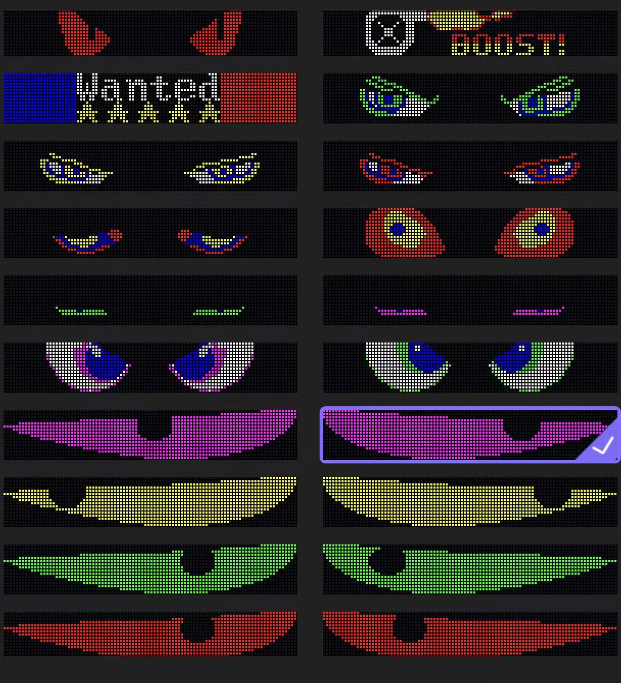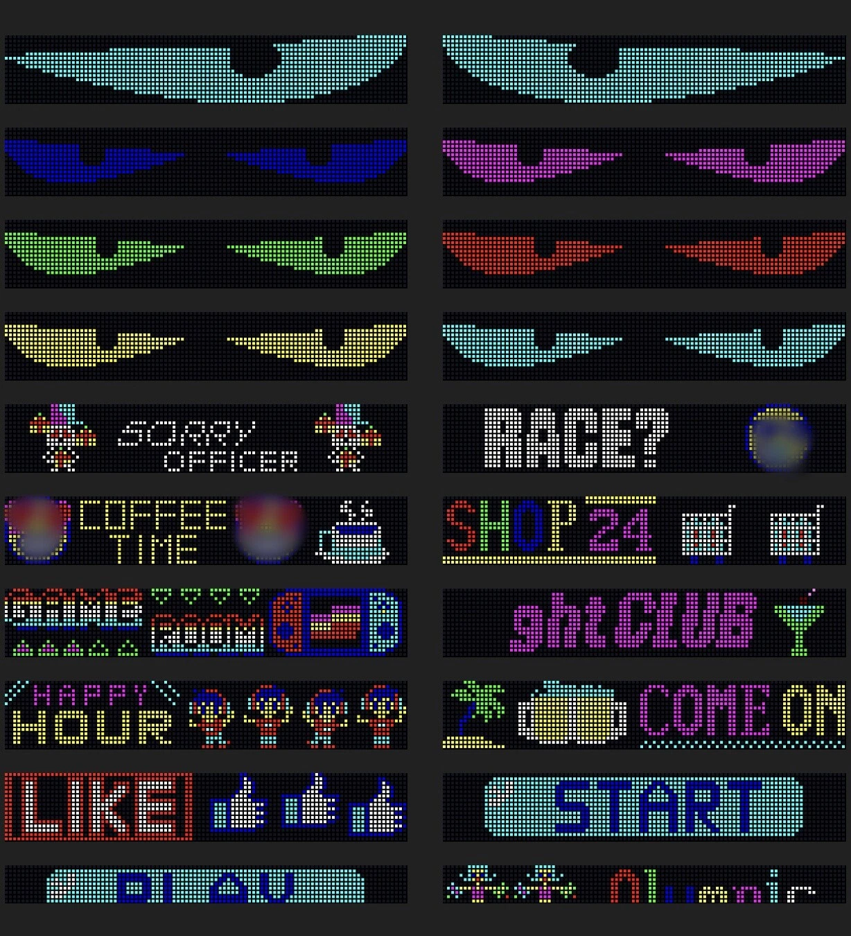 Specification: Size : 348 x 102 mm / 13.7 x 4.01 inches; Resolution: 64px x 20px Precautions: If you need larger coverage, you can order two panels. We have left and right eye images for the two devices. They work independently and need to connect with the app one by one. Features: 5V USB Car LED Display Screen with APP and Remote Turn heads with the Flexible Car LED Panel, a cutting-edge lighting accessory that will transform your vehicle into a rolling light show. Using a high-end flexible LED array coupled with programmable circuitry encased in a flexible sticky polymer, this panel allows you to stick it anywhere and peel it off easily anytime without any mess. Simply plug in the supplied 5V USB cord or a power bank and enjoy! Multi-function Remote: Use the remote to instantly switch between 17 pre-loaded automotive-themed animations or your own uploaded images! Quickly display anything you need with ease. Easy Application: The LED display features a durable, waterproof, and dust-resistant sticky polymer, maintaining flexibility for easy application on any window without glue. Peel it off mess-free anytime, with double-sided adhesive included for permanent use. Additionally, the package includes a multi-function remote and a 5M 5V USB cable for versatile placement in your car, business, or home. Unlimited Customization via APP with Phone: Unlock all features for ultimate customization by seamlessly connecting via Bluetooth using the app on your Apple or Android device. Access free-draw, upload your own designed images or GIFs, and browse a library of user-generated content. There are two ways to sync them: Choose images for each panel and power them on together. The remote controller can control more than one device. Set the images for the remote controller buttons (there are 17 buttons) for each device and use the remote controller to manage both. Clear instructions for changing images on the remote controller Included: LED Panel, 5M 5V USB Cable, QR code to download the app, adhesive for permanent applicati