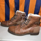 Dexter Brown winter Boots Men size 11.5 Cognac Fleece-Lined Liam Cap Toe 171852 faux Leather side Zip great used condition normal wear please check the pictures carefully for better look thanks no returns refunds or cancel orders sold as is thanks
