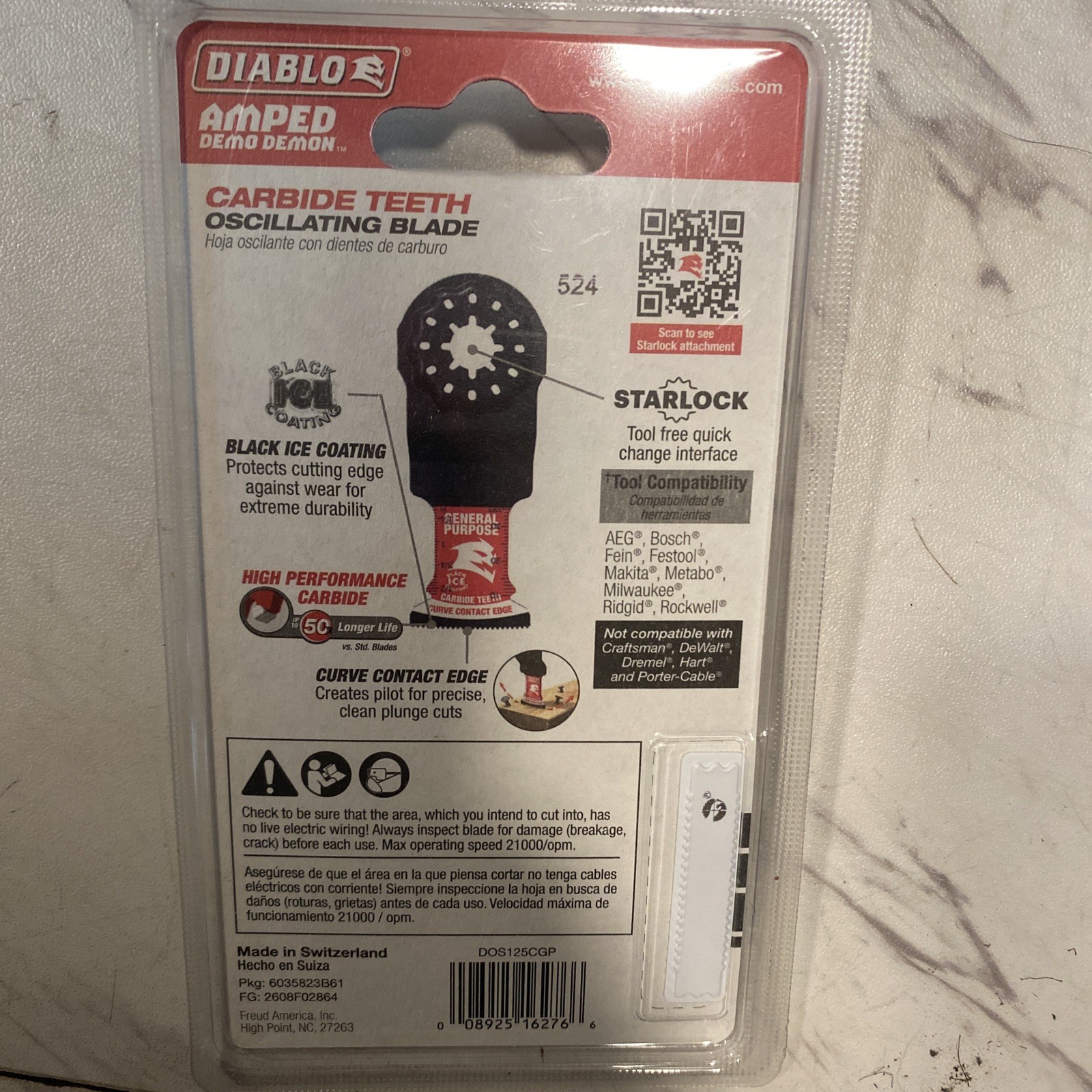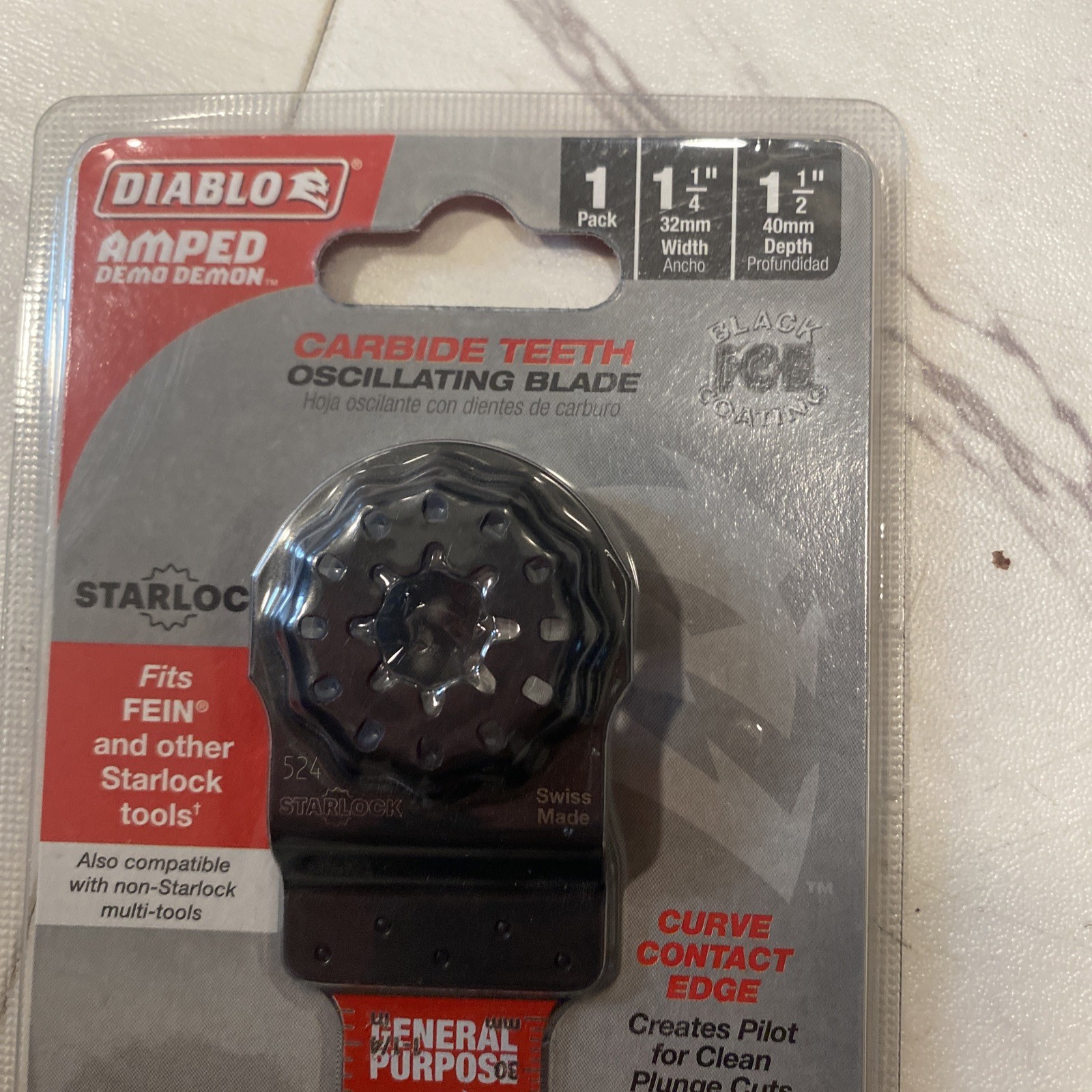 The Diablo Starlock 1-1/4 Carbide Oscillating Blade is a high-quality, versatile tool designed for various cutting purposes. Made from durable carbide material, this blade is suitable for a range of materials and is crafted in Switzerland by the reputable brand Diablo. With a blade diameter of 1-1/4 inches and a package quantity of 1, this oscillating saw blade is perfect for both DIY projects and professional use, offering precision and efficiency in cutting tasks.