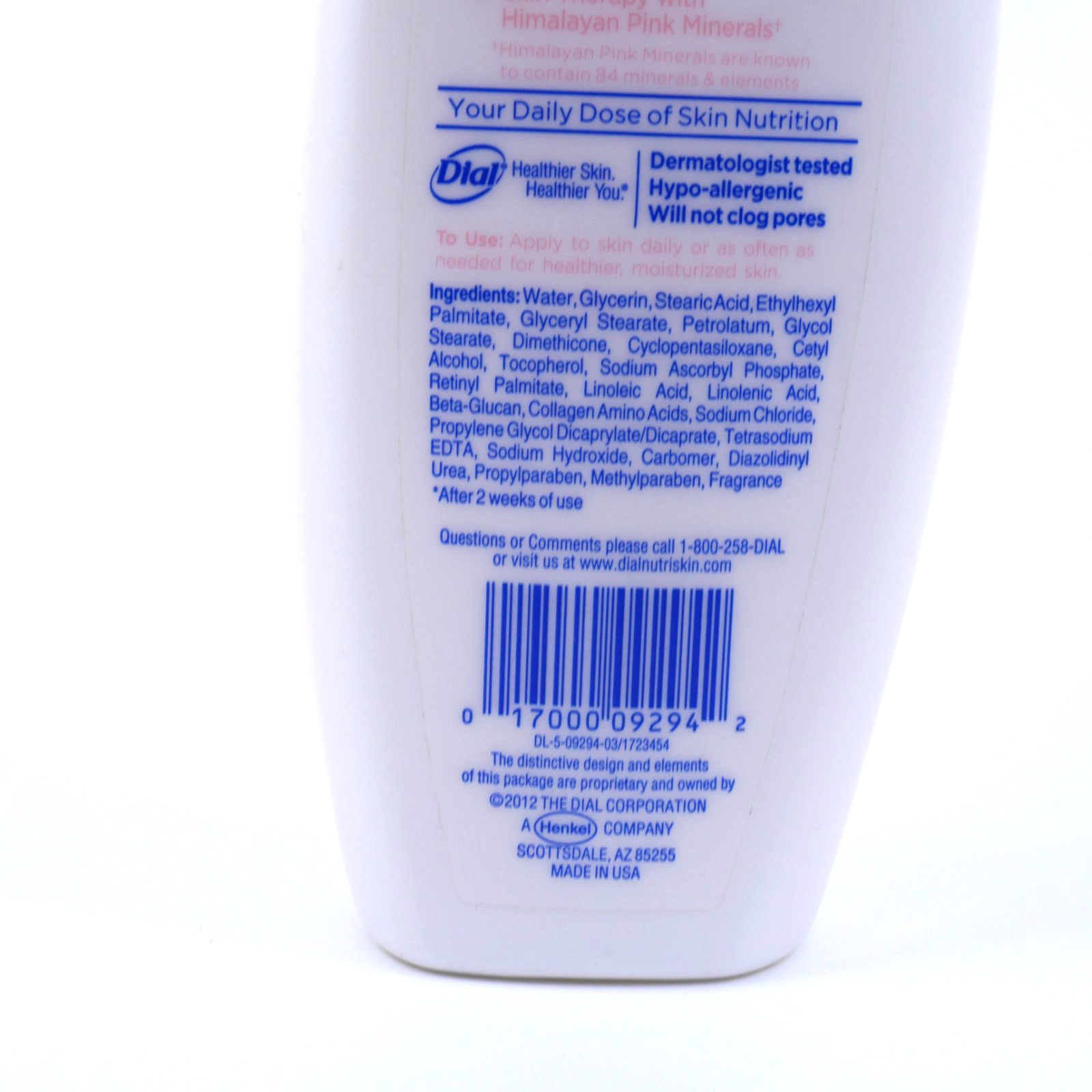 1 bottle of Dial 7 Day Moisturizing Lotion SKIN THERAPY w/ Himalayan Pink Minerals 12 fl oz Bottle is NEW but does show significant fading on label due to location on store shelf