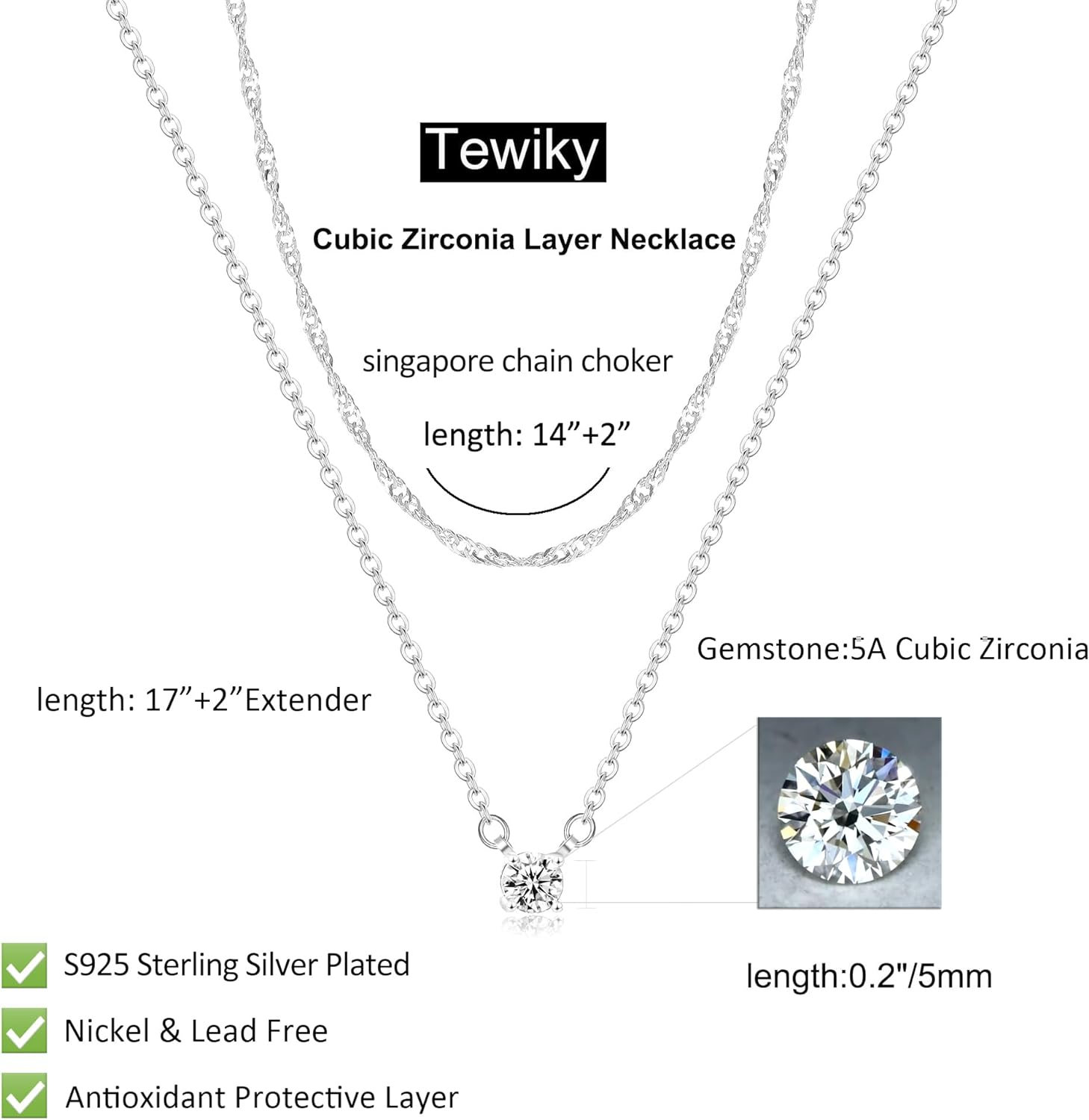Store New Arrivals Add to Favorite View Feedback Contact Fast deliveries to the customer's home Quality customer service John Make the customers happy! Diamond Necklaces for Women, Dainty S925 Sterling Silver/ 14K Gold Choker Necklace Simple Silver CZ Jewelry Necklaces for Women Trendy Gifts Description Tewiky Diamond Necklaces for Women, Dainty S925 Sterling silver/ 14K Gold Choker Necklace Simple Silver CZ Jewelry Necklaces for Women Trendy Gifts Style Layered chain CZ Metal stamp 925 Sterling Silver Chain Singapore Gem Type Cubic Zirconia Metal Brass Material Silver Plated Material Type Silver Plated Model number NK04-layer chain cz SL Setting Prong Department womens Package Dimensions 2.76 x 2.76 x 0.59 inches; 0.71 ounces Clasp Lobster ABOUT US We offer the best prices around on high quality products. Our E-store includes media such as books, movies, music and games while offering electronics, toys, sporting apparel, clothing, tools, general home, garden items and more. SHIPPING We are always working hard to ensure your package arrives as soon as possible. Please understand that some factors like weather, high postal traffic, and the performance of shipping companies are outside of our control. We offer free shipping to the lower 48 states and ship within 2 business days of payment, usually sooner. We do not accept P.O. Boxes. Please provide a physical address. For shipping outside of the continental USA, we only use eBay's Global Shipping Program. The item is shipped to KY and then sent to the rest of the world. International customers are responsible for all duties and taxes. Continue to 'check out' to calculate costs for shipping the item to your country. Messages regarding eBay's Global Shipping Program MUST be directed at eBay EXCLUSIVELY. RETURNS We offer a 30-Day Return Policy on items in which you are not completely satisfied with. You have the option of a full-refund or an exchange of the item. No returns are available on items shipped outside of the USA PAYMENT We accept PayPal. CONTACT US This page content is yet to come Please ad us to your favorite seller and visit again later Thank You CUSTOMER SATISFACTION We try our very best to make sure every customer is completely satisfied. If there's a problem, message us! We're happy to help. WE ACCEPT
