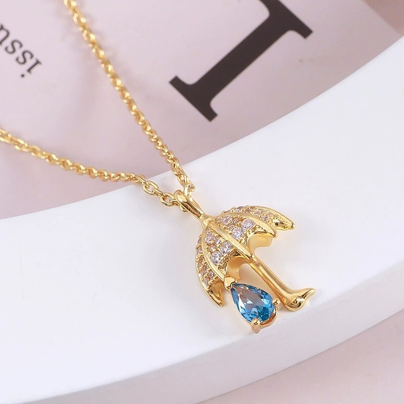 PRODUCT INFORMATION Material: brass with gold plating Inlay: Zircon Shape: Umbrella Size: The necklace measures approximately 40cm+8cm in length, Attention: Due to the shooting environment and display equipment, there may be color deviation in the product. Please refer to the actual product for accuracy.