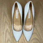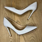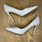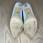 Diane Von Furstenberg White Woven Leather Heels Pointed Toe Pumps Women’s 8.5 4.25” heel black marks on toes and heels-pictured Please review all photos!