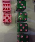 Dice Lot - 30 Six Sided Dice - Pink, Green, Purple & White Includes: 5 Pink 10 Green 8 Purple 7 White Total of 30 Dice Approximate Size: 5/8” x 5/8” x 5/8” Used - some play wear, see pics Review the pictures carefully! Please take the time to examine the pics before buying or bidding. We always try to post the clearest pictures possible. What you see in the pictures is the actual item for sale. Sometimes items can show slightly darker or lighter in digital photographs but we always try to represent the items as accurately as possible. Items are sold “as is”. If you have any questions or need further pictures of an item, please contact me. SHIPPING Item ships from Pembina, North Dakota via United States Postal Service or United Parcel Service (UPS). After payment; Item will be shipped within 2 business days, unless weather prevents travel :) I accept returns, but buyer is responsible for return shipping costs. Any concerns or questions, please contact me and I will do my best to resolve! Thank you for looking. I hope you find an item that brings you joy and rekindles great memories. 😊