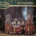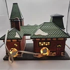 This beautiful collectible from Dickens Collectibles features a Victorian series lighted train station and cafe. Made from porcelain, it was manufactured in 1998 and is suitable for indoor use in areas such as the cloakroom, office, bedroom, living room, lounge, or dining room. The piece is approximately 9" in length, 7" in height, and 4 1/2" in width and comes in a box for safekeeping. The train station and cafe are beautifully decorated with multicolors and features a train subject, making it perfect for Christmas and seasonal decor. This original piece is signed and part of the Victorian Series collection. Add this unique and timeless piece to your collection today! Original box Mint condition