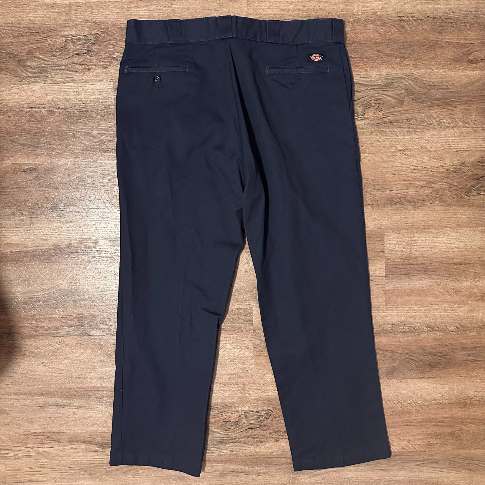 The Dickies 874 Chinos Mens 38x29 Black Cotton Polyester Work Pants are versatile pants designed for various occasions such as casual, workwear, or business. Made from a durable canvas fabric blend of polyester and cotton, these mid-rise, straight-leg pants feature a zippered closure and a flat front design. With a 29-inch inseam and 38-inch waist size, these lightweight and breathable pants also include slash pockets for added convenience. Perfect for year-round wear, these Dickies chinos are a stylish and practical choice for men looking for comfort and style in their wardrobe. Garment is in good condition but has some minor flaws that are shown in the photos so be sure to look them over closely.