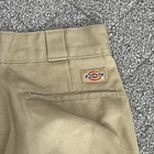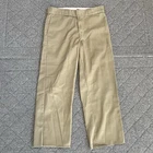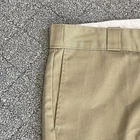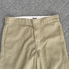 Dickies 874 Work Pants Mens 32X27 Tan Beige Cropped Raw Hem Skater Original Fit See measurements for accurate fit Waist 16 inches across Inseam 27 inches Rise 11 inches All measurements are done flat lay