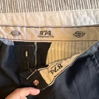 The Dickies 874 Original Fit Chinos in black are versatile pants suitable for casual, work, or business occasions. Made from a lightweight and breathable cotton blend fabric, these pants feature a mid-rise with a straight leg style and flat front design. With accents like a zipper closure and slash pockets, these pants offer both style and functionality. Perfect for year-round wear, these chinos are machine washable and come in a classic size 30x30. The biker, workwear, and vintage themes add a rugged edge to these timeless pants from the Dickies 874 product line. Garment is in good condition but has some minor flaws that are shown in the photos so be sure to look them over closely.