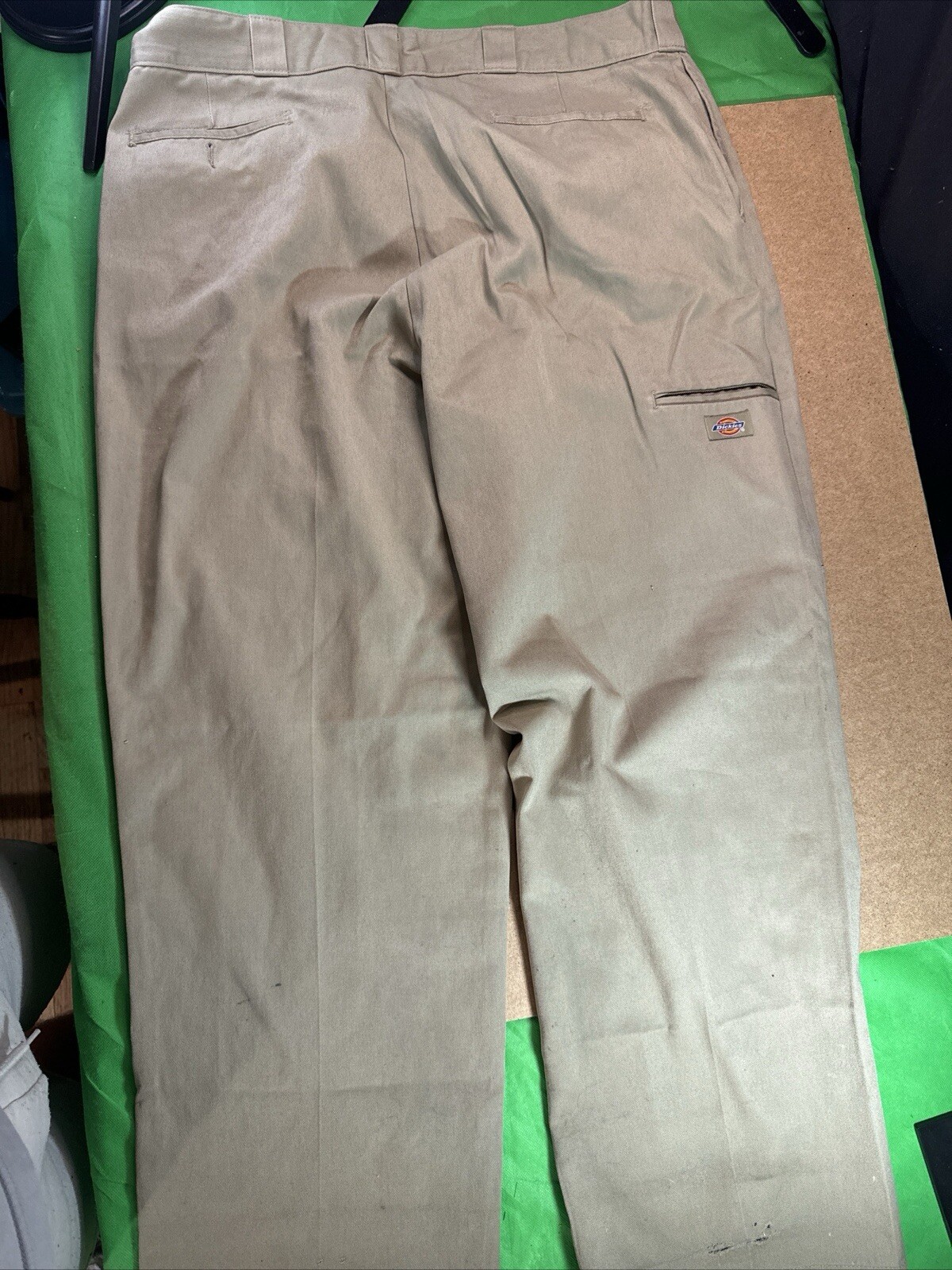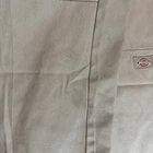 Dickies Work Pants Beige Canvas Utility Double Knee Size Measured - Read Description: Pre-owned Dickies work pants in beige. Utility style with double knee reinforcement. Size tag is unreadable, but measurements are provided below. Shows signs of wear including stains and fabric damage (see photos). Condition: • Pre-owned with noticeable wear • Stains and fabric damage (see detailed photos) • Tag unreadable, size measured manually