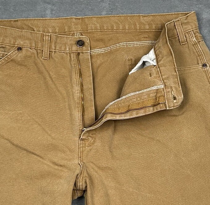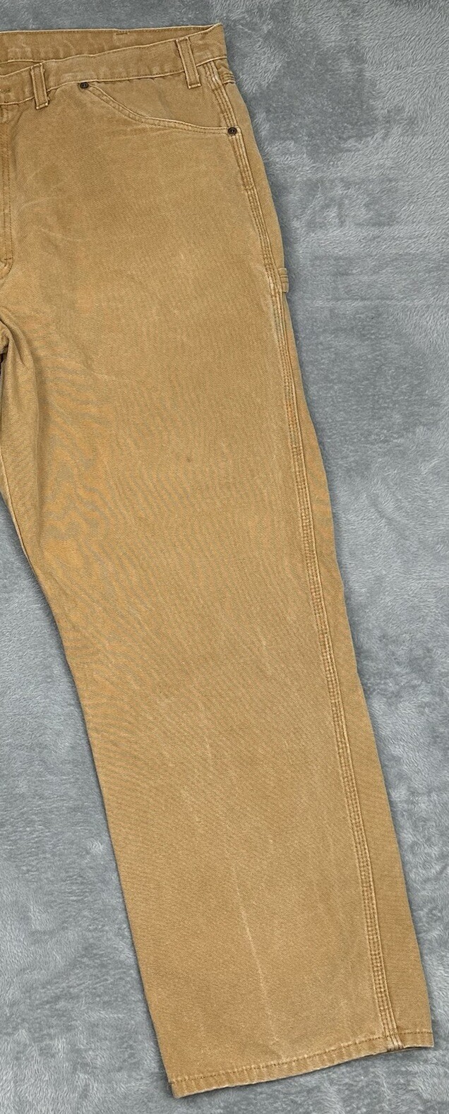 Dickies Pants Mens 44x32 (42x30.5) Brown Canvas Carpenter Jean Hammer Loop Work Faded, a few stains and one snag but in overall very good pre-owned condition and laundered. Please see measurements in photos.
