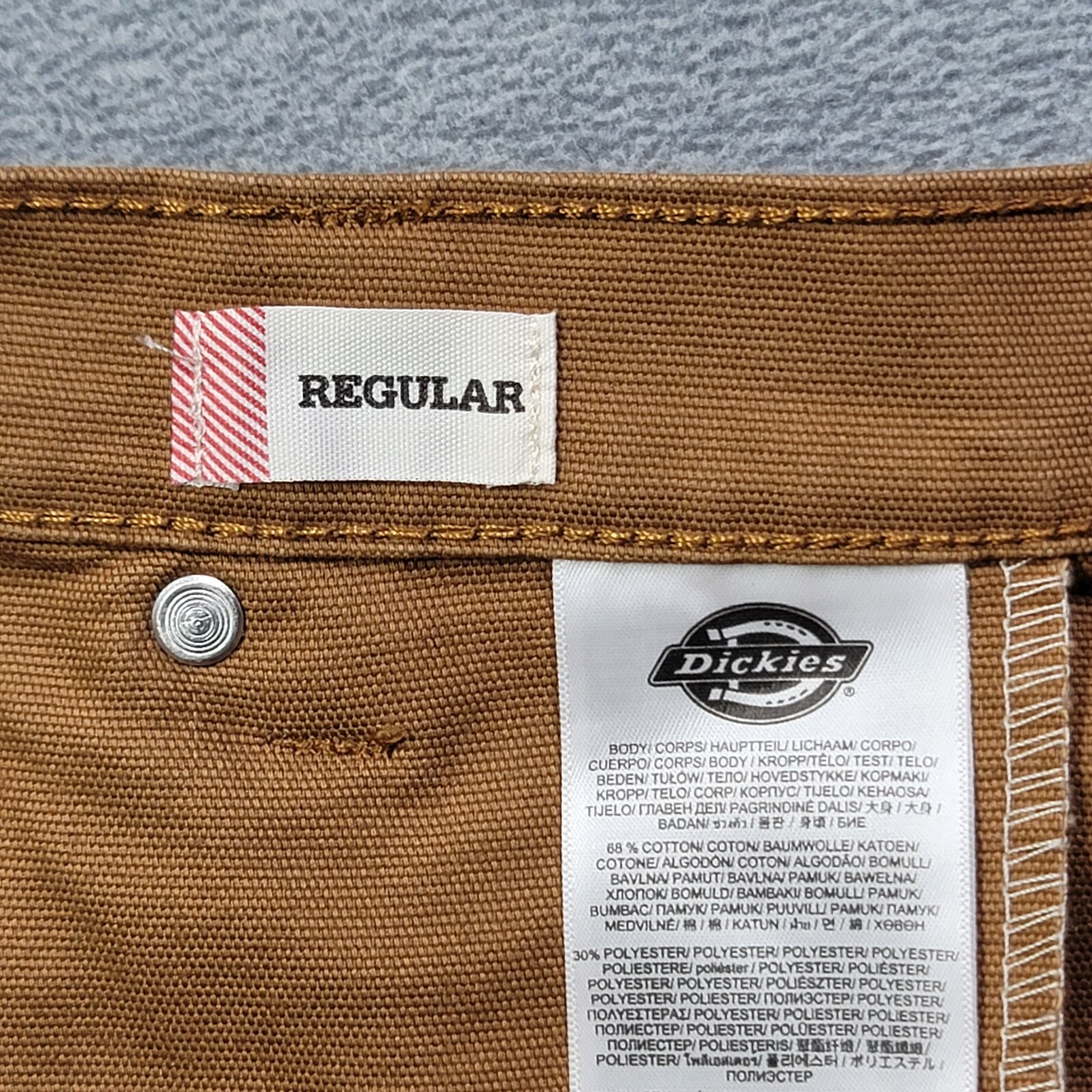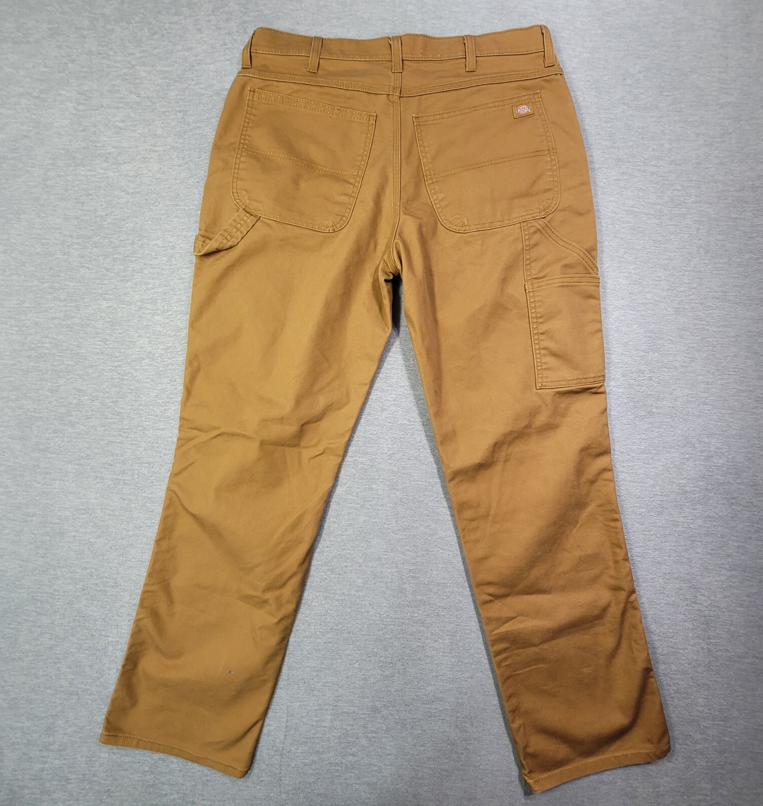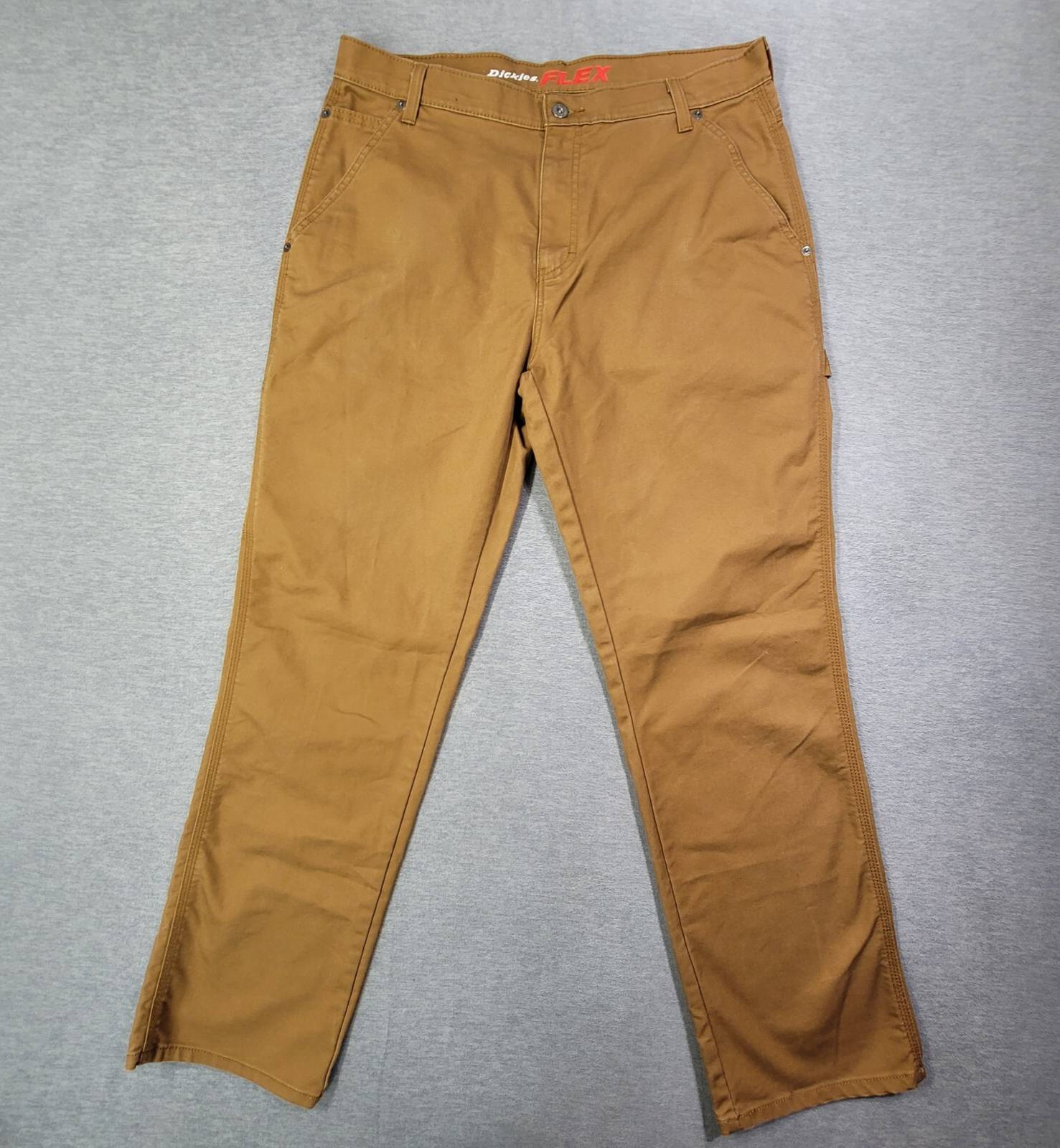 Crafted for durability and comfort, these Dickies Carpenter Pants are an essential addition to any working man's wardrobe. The wheat brown color offers a classic, versatile look, while the spandex, polyester, and cotton materials ensure a blend of toughness and breathability. With a mid-rise and flat front design, these pants provide a regular fit that allows for ease of movement throughout the workday. The pants feature a practical straight leg style, ideal for busy professionals who demand both functionality and a sharp appearance. The size 34 waist with a 32-inch inseam secures with a reliable zip closure, ensuring a snug fit for regular size types. Whether it's for outdoor projects or office wear, these pants deliver the reliability and style expected from the Dickies brand.
