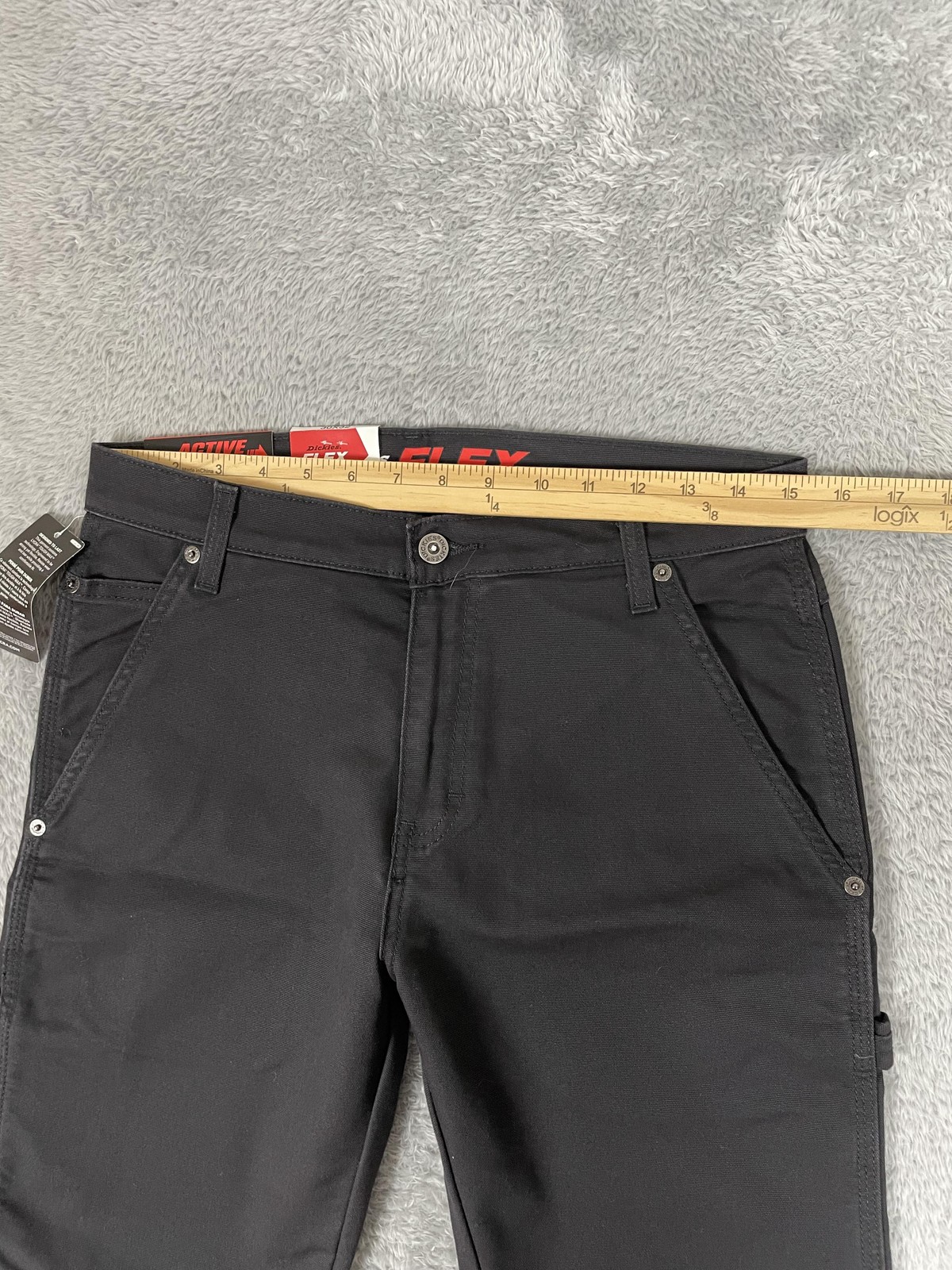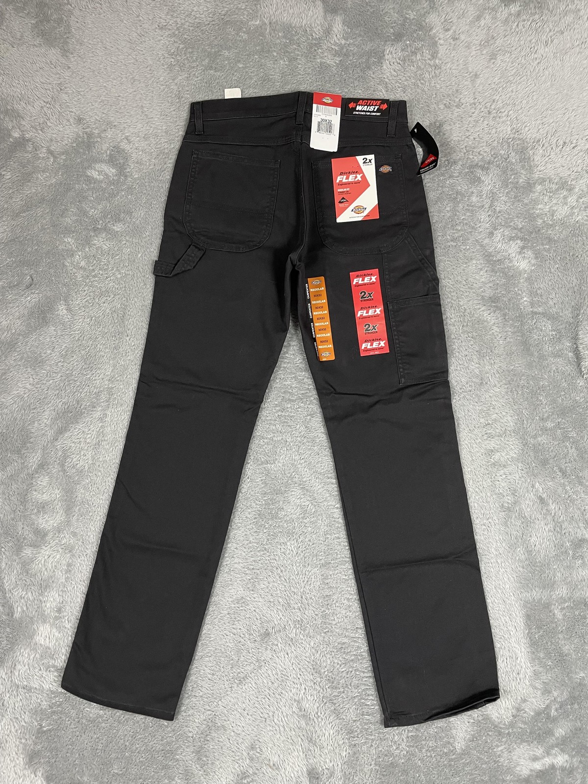 Dickies FLEX Carpenter Pants Mens 30x32 Black Regular Fit Straight Leg Condition: Brand New with Tags Features Active Waist with stretch for comfort and 2X stronger Tough Max Lycra technology for flexibility and durability Regular fit with straight leg and utility pockets, hammer loop on one leg Material: 68% cotton, 30% polyester, 2% elastane for easy movement Color: Black Model/style: DP802SBK Tag size: 30x32 (Mens) Exact flat measurements shown in photos for waist, inseam, leg opening Made in Mexico Perfect for workwear, carpentry, or casual use with added stretch and reinforced construction