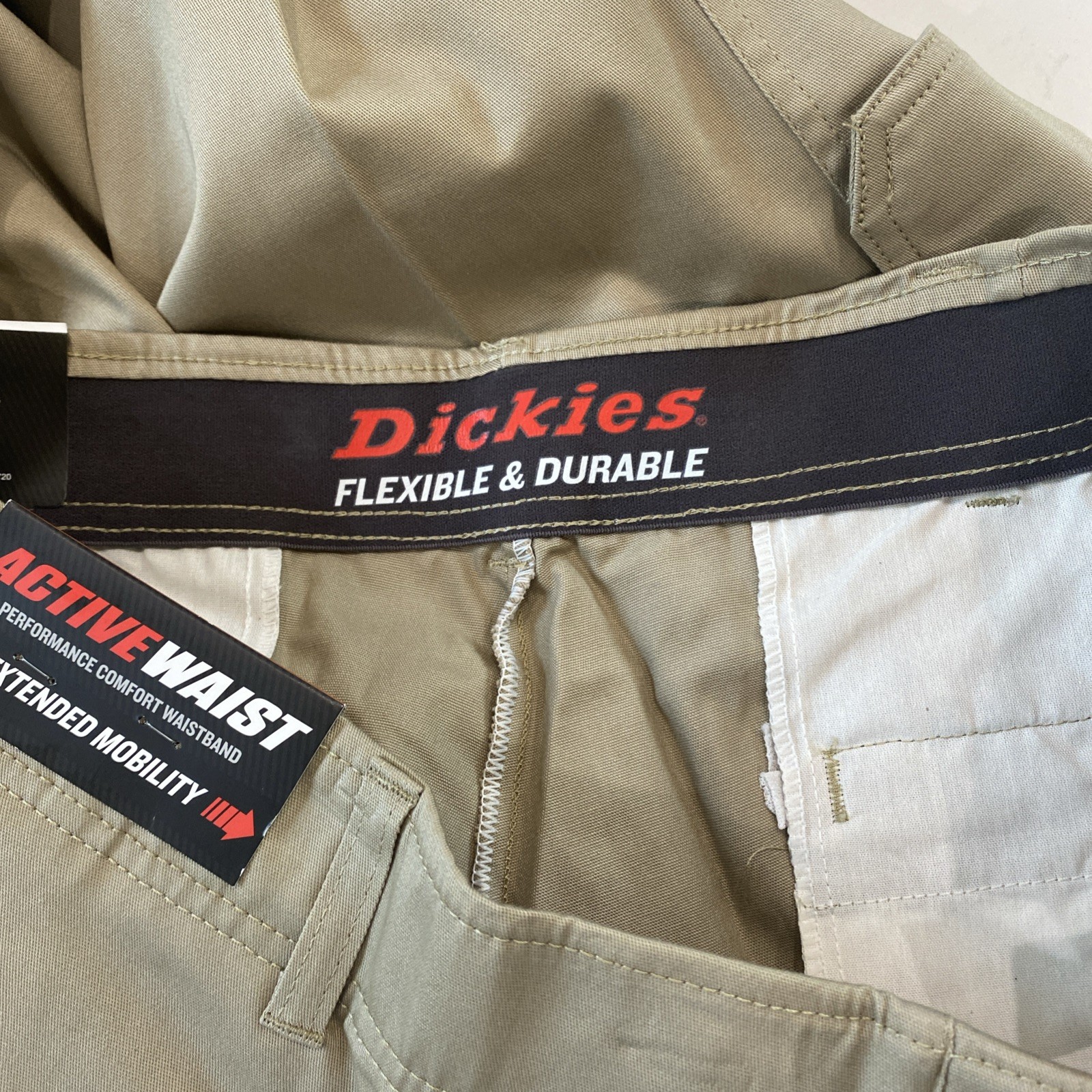 The Dickies Mens NWT 38x30 Flex Cargo Work Pant is a versatile and durable pair of tan work pants suitable for various occasions including casual, workwear, and business. Made from a blend of spandex and cotton, these straight leg pants feature a mid-rise waist with a flat front design. The cargo style pockets offer ample storage space, while the active waist technology provides added comfort and flexibility. With a timeless solid tan color and easy-care fabric, these pants are a practical choice for any season. Pet and smoke free environment.