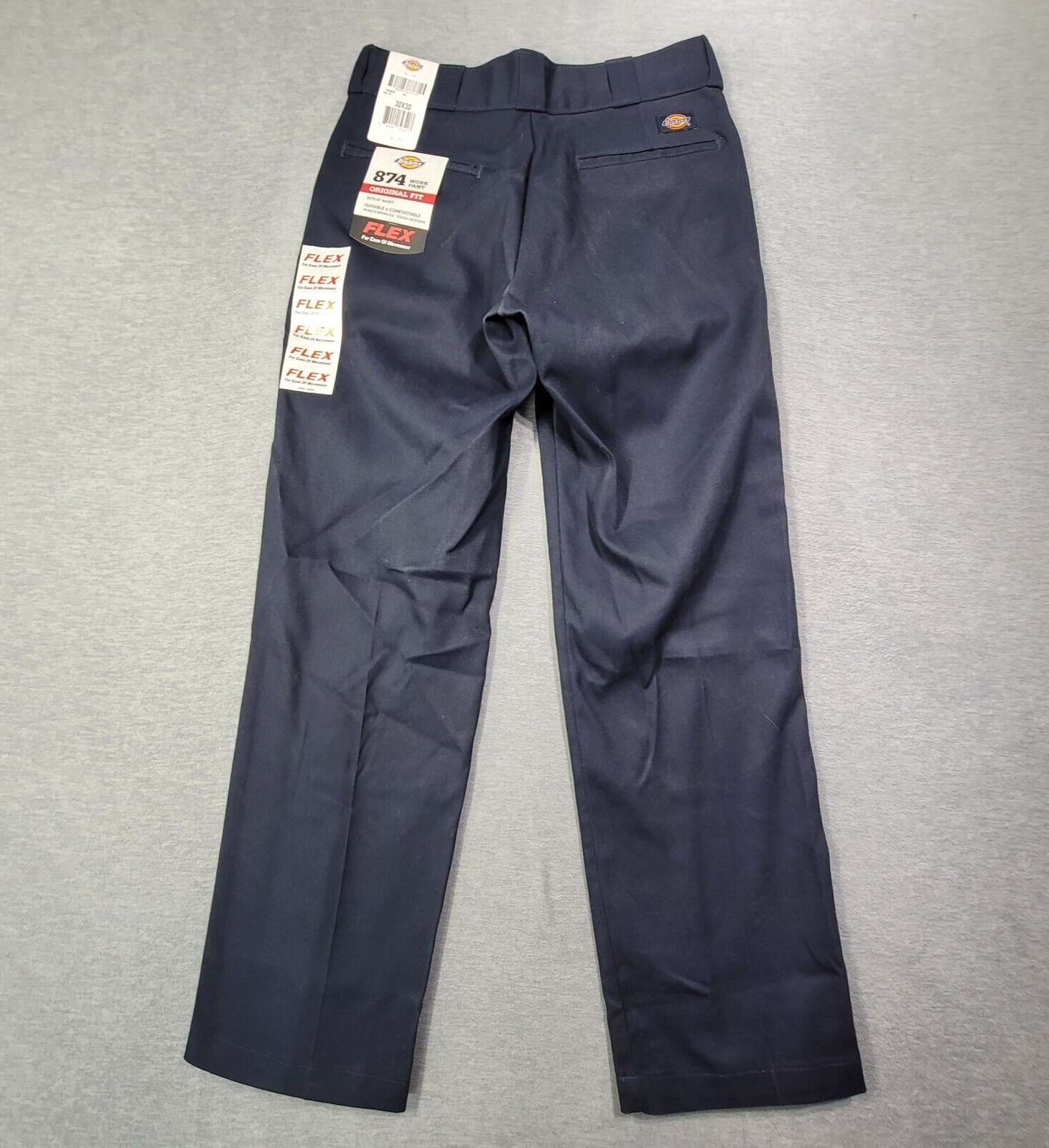 Crafted for durability and comfort, these Dickies 874 navy chino pants are a staple for any wardrobe. The original fit offers a classic silhouette with a straight leg design, ensuring a timeless look for work or casual wear. Made with a blend of cotton and polyester, these pants promise both longevity and ease of movement throughout the day. Attention to detail is evident with a mid-rise waist and zip closure, providing a secure and flattering fit. The solid navy color makes these pants versatile for pairing with a range of shirts and shoes. Embrace the combination of style and practicality with these Dickies work pants, size 30x30, featuring a flat front and ready to be worn with confidence.