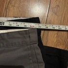 This lot includes two pairs of Dickies work pants in size 33x32. The pants are in a slim straight fit style, featuring a gray color and made from a cotton blend fabric with stretch for comfort. They have a flat front design with a zip and button closure, suitable for casual, workwear, or business occasions. The pants have a mid-rise and slash pockets, ideal for the winter, summer, fall, and spring seasons. These Dickies 874 Original and Slim Straight pants from American Eagle Outfitters are machine washable and offer a slimming effect.