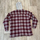 The Dickies Men's Burgundy Gray Plaid Insulated Hooded Zip Up Flannel Jacket in size L is a versatile and practical outerwear option for men. Made from cotton flannel with a nylon lining, this mid-length jacket features a zip closure and a hood for added protection. The quilted polyester insulation keeps you warm during the winter, fall, and spring seasons, making it suitable for activities like walking, hunting, and hiking. With a classic plaid pattern and a red color, this jacket combines style and functionality for the modern man.