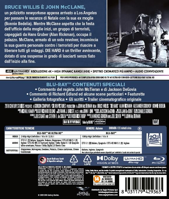Further Details Title: Die Hard Trappola Di Cristallo - 4K (Bd 4K + Bd Hd) Condition: New Format: 4K UHD Blu-ray Description: John McClane è un poliziotto newyorkese appena arrivato a Los Angeles per passare le vacanze di Natale con la sua ex moglie. Mentre McClane aspetta che la festa dell’ufficio della moglie inizi, un gruppo di terroristi capeggiati da Hans Gruber, occupa il palazzo. McClane, armato di un solo revolver, incomincia la sua guerra personale contro i terroristi per riuscire a liberare tutti gli ostaggi. Genre: Action & Adventure Studio: Eagle Pictures EAN: 8031179429363 Director: John McTiernan Actor: Bruce Willis, Bonnie Bedelia, Reginald Vel Johnson, Paul Gleason, Bruce Willis, Bonnie Bedelia, Reginald Vel Johnson, Paul Gleason, John McTiernan Run Time: 2 ore e 11 minuti Missing Information? Please contact us if any details are missing and where possible we will add the information to our listing.