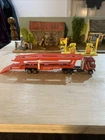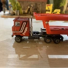 This is a vintage Zylmex diecast toy from the 1980s, featuring a K1 Mack truck cab and car transporter. The model is a rare find, with a red truck cab and multi-colour car transporter. Made in Hong Kong, this toy is suitable for both boys and girls who enjoy playing with diecast vehicles. The Zylmex K1 Mack truck is a unique addition to any toy collection, especially for those interested in vintage diecast toys.