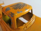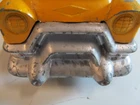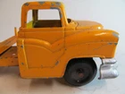 Crafted for the enthusiast of all things automotive, this diecast model truck replicates the robust aesthetics and functionality of the iconic GMC vehicle. The attention to detail is evident in the precise molding of the diecast material, capturing the essence of the original truck in a scaled-down format suitable for display or play. The unbranded nature of this model ensures that it stands out in any collection, free from the constraints of a specific brand's design. Its simple yet realistic depiction of a truck offers versatility for collectors and fans of various truck models, allowing for easier identification and appreciation of the vehicle's features. - eBay A.I. Diecast model truck. Purpose unknown. 10 inches long. 2-3/4 inches wide. 3 inches tall. I'm guessing there is a major part missing off the back. The purpose of this truck is a mystery. It is in good solid condition. There is scribble from a black marker. The yellow paint is worn, and worn bare. The axles are rusty and straight. The wheels turn freely. The grille looks like a GMC grille. Thank you!