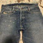 Measurements: 16.5“ waist 9.5“ rise 30“ inseam 7“ leg opening Has bleach stains throughout and some faint stains on front. Tags inside the jeans were cut out please see measurements before purchase.