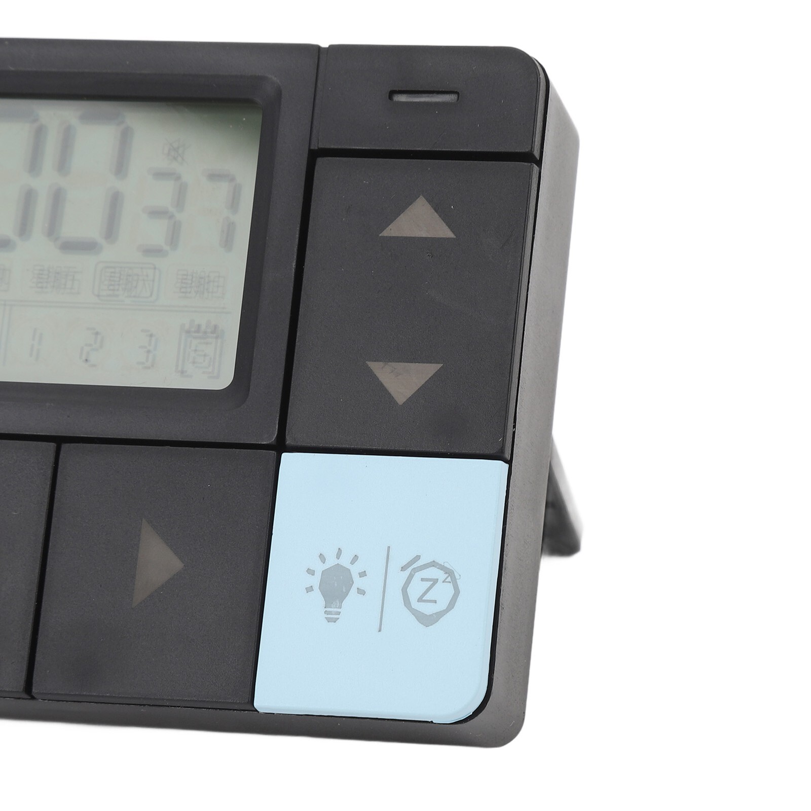 This clock is a total game-changer! It shows everything I need at a quick glance—time, date, even the temperature. Setting three different alarms is perfect for my schedule, and the snooze button is my morning lifesaver. Looks sleek and keeps me organized!