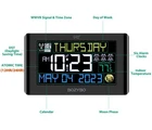 Why Do You Need Digital Clock? 9.8" atomic clock with large numbers can provide clear information for your family. Provide detail date, week, year and time will help your family elders keep easy with daily life. How many clocks does it support? You can set up 6 clocks at the time, one for Getting up, one for go to school and some for others. What is the size of screen? The size of screen is 7.5", while the size for item is 9.8", it is perfect to place on desk or hang on the wall. What is the atomic clock? Normal alarm clock will have time loss after around one month using, with WWVB function, this atomic clock will adjust time each deep night and make sure it is correct to seconds. Digital Alarm Clock: Digital clock has 6 alarm clocks to program your day and week. It comes with three stickers to DIY your alarm clocks. Colored digital clock with large numbers to show information including: time, day of the week, date, year, indoor temperature, DST, time zone and moon phase. Atomic Clock for Bedrooms with WWVB Function: The atomic clock has four time zones (P: PST, M: MST, C: CST, E: EST) and has the ability to sync to the correct time at night with the atomic WWVB function. With DST ON, the clock will adjust to daylight savings time automatically. After initial setup the clock will automatically sync to the correct time during the night with the WWVB function on. Digital Clock with Large Display: Equipped with 7.5" HD colorful screen, you can read the screen from any angle, including on a desk or hanging on a wall. Large display with adjustable backlight will be helpful to read information easily, including different colors for each function. Plugs into a wall outlet and can also be run via battery backup to ensure seamless use during power outages. Easy to Set Digital Calendar: Operation buttons and Snooze function are accessible when clock is freestanding or hanging on a wall. Includes detailed written user manual for ease of setup and use. Includes an indoor temperature reading to help you plan your day and comfort level. Gift Idea: Well packaged digital clock with large display is a great gift for family members, including older adults due to the large, clear display. The clock is well-designed to match any bedroom, living room, office, or home. A great gift for Mother's Day and Father's Day.