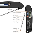 1. Pivoting probe turns the thermometer off when the probe closed. Auto Power Save after 10 minutes of inactivity 2.Super Bright Built-in LED with backlight makes it easy to read at night. Display can shows temperatures in Fahrenheit and Celsius 3.This thermometer can be field calibrated, and features both a maximum and a minimum feature, which displays the highest or lowest temperature during latest use. 4. The 304 stainless steel folding probe . The housing is made from food-safe ABS plastic 5. Uses 3V Button IEC CR2032 Lithium batteries, which are included. 6. This M meat thermometer also perfect for fryers, bread, candy, coffee, and homebrews. Product Specifications: 1. Waterproof design 2. With hanging hole 3. Backlight function 4. Can be calibrated in 0ºC 5. Resolution: 0.1ºC/0.2°F 6. Min max temperature record 7. Inside magnet on backside 8. Power saving: 10 min auto-off 9.Foldable probe diameter:3.5mm 10.Response time:3-4s 11.case material: Eco-friendly ABS 12.Power source: AAA battery(not included) 13.Probe material: food safety 304 stainless steel 14.Measuring range:-58°F ~ 572°F (-50°C ~ 300°C) 15. ±2°F (±1°C) from -4 to 302°F (-20 to 150°C) and ±4°F (±2°C)from 302 to 392°F (150 to 200°C. Otherwise >4°F(2°C) 16.Auto-off-unfold the proe to turn on and fold to turn off 17.Heat-resistant sturdy sticker on front panel 18.1.7mm diameter needle tip, easy to insert into meat Package Included: 1 x Food Thermometer 1 x User