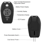 High Accuracy: Perfectly combines humidor hygrometer and thermometer into , fast response that measures every 15 seconds with 15 sensitive VENTS to provide updated and accurate readings, so you can clearly see the humidity of the cigar and the temperature and humidity around the cigar. Wide measuring range that measures temperature from 14℉ to 122℉(-10℃~50℃), temperature accurancy range around +/-2℉( +/-1℃). Humidity sensor measures humidity from 20% to 90%, humidity accurancy range around +/-8% Upgraded Design: With a external DUAL SENSOR - RETRACTABLE plug-in STAINLESS STEEL probe,sturdy and durable.Specially designed for cigars,Insert the cigar into the dual probe humidity sensor and press OK switch,you can easily detect the humidity inside the cigar,no worry about loosening tobacco flakes.When not in use just retract it and will not hurt your fingers under any circumstances.This humidor hygrometer was practical and convenient[The new version of this item is printed with logo] Easy Read and Operation: The humidity gauge with a large DIGITAL LCD DISPLAY,easy to read current temperature and humidity and battery power.Built-In 2 user-friendly buttons,is ℃/℉ SWITCH that you can switch °C/°F according to your preference.The other is OK SWITCH that the humidity gauge indicate the current humidity level of the cigar. BATTERY INCLUDED and PRE CALIBRATED,so you can use directly once open the box. Beside,you can recalibrate the temperatue and humidity values as you like Compact and Portable: Humidity gauge is SMALL and LIGHT enough for saving space and carrying outdoors.SIZES about 1.9'’*1'’*3.1'’,You can take it anywhere you go.Suitable for greenhouse,office and wine cellar,cigar humidor and other places that need to monitor temperature and humidity levels,enjoy the convenience its bring,also come with a packed box,so purchase our cigar accessories for men and women as the ideal gift for Father’s Day,Mother’s Day,business partners or anyone who loves cigars After Sale Service:Every cigar accessories has undergone rigorous inspection. and we take customer satisfaction very seriously and always welcome your feedback. Any question or problem, us and you will get a satisfactory solution