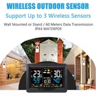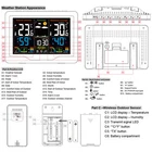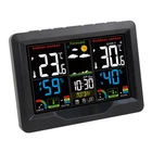 Product Description: Features : Multifunctional Weather Station : Adopt large LCD color screen to display rich information: Indoor/outdoor temperature and humidity, customized temperature (hi/lo) alert, time/date/week, dual alarm clock/snooze(extra 5-minute sleep), vivid weather forecast, mold risk and comfort level. RF Function: Comes with an outdoor transmitter, which adopts advanced RF sensor technology to collect data precisely and transmit quickly to indoor receiver. 60 meters transmission range in an open area. Waterproof level IPX4. Tendency Chart & Weather Icon Display: The weather station can show the tendency and record the maximum and minimum values of indoor & outdoor temperature, forecast weather in 12 hours and provides 6 weather icons display. Dual Alarm & Snooze: Supports two alarm clocks setting and snooze function with the snooze time programmable from 5 to 60 mins, practical and useful. Mold Risk & Frost Point Alarm: Able to detect mold risk and display in 3 levels; when the temperature is lower than the preset value, the clock will prompt an alarm. Practical and Aesthetic: Simple design can fit any home decor, function-rich clock serves multiple purposes. Specifications: Material: ABS C olor: Black Power supply(Clock): 2 * 1.5V AA batteries(Not included) / USB P ower supply(Transmitter): 2 * 1.5V AA batteries(Not included) F unction: Time / Calendar / Temperature / Humidity / Dual Alarm Clock / Snooze / Backlight / RF / Weather forecast / Mold Risk Indicator / Frost Point Alarm Indoor Temperature range: 0℃ ~ 50℃(32℉~122℉) Outdoor Temperature range: -20℃~70℃ (-4℉~+158℉) Temperature resolution: 0.1 ℃ & ℉ Indoor Humidity Range: 20% ~ 95%RH Outdoor Humidity Range: 20% ~ 95%RH Humidity resolution: 1%RH Max. RF Channel: 3 7 Week Language: English, German, Italian, French, Spanish, Dutch, Danish Alarm Clock: 2 Snooze: 5~60 mins I ndoor Comfort level display: 3 levels Indoor Mold Risk display: 3 levels 6 Kinds Weather Display: Sunny/Cloudy/Slightly Cloudy/Rainy/Stormy/Snowy Alert: Over Temperature and Frost Alarm Temperature Record: Max./Min. Item Size: 16*11.6*3cm / 6.29 * 4.56 * 1.18in Item Weight: 216g / 7.61oz Package Weight: 413g / 14.56oz Package Size: 17*6.5*12.8cm / 6.69 * 2.55 * 5.03in Package Include: 1 * Clock 1 * Transmitter 1 * USB cord 1 * User Manual (E nglish)