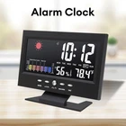 Description: 1. Clock display, 12/24 hours can be switched. 2. It can display time, weather, temperature, humidity, day of the week, temperature trend. 3. With alarm clock, snooze function, weather display, temperature trend indication, very practical. 4. Voice-activated backlight, energy-saving and convenient. You can turn off the voice-activated function through the switch on the back of the product. 5. Powered by 2 x 1.5V AAA batteries (not included). Specification: Material: ABS Color: Black Screen size: 107*58mm Temperature measurement range: -10-61°C / 14.2-140°F Humidity Measurement Range: 20%-99 Power supply: 2 * 1.5V AAA batteries (not included) Packing list: 1x Alarm clock (without battery) 1x USB charging cable Note: 1. When this product is powered by batteries, the screen backlight will not be always on (carbon batteries are recommended, please do not use high-power alkaline batteries) 2.When this product uses USB power supply, the screen will be always lit.