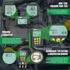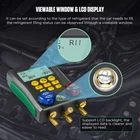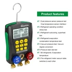 The intelligent electronic refrigerant group instrument is an auxiliary instrument for the installation, testing and maintenance of refrigeration equipment such as air conditioners, fridge and cold storage. Feature: Double pressure test, double temperature test Digital reading, multi-unit switching Large-size LCD display, LCD backlight support Calculate the degree of subcooling and superheating Test the percentage of vacuum measurement; pressure leak measurement, leak time speed record Long-life valve switch, 1/4 inch standard interface design Built-in 32-bit digital processing unit and high-precision data acquisition unit Built-in 89 kinds of refrigerant pressure-evaporation temperature database Pressure Leakage Test Calculate the pressure difference between the initial test pressure and the second test pressure to determine if the refrigerant is leaking. High/Low Pressure Temp Test This Manifold gauge can measure the temperature of the refrigerant in the high/low pressure pipelines of the air conditioning system. Evaporation Pressure & Temp Test The maximum pressure when the refrigerant changes from liquid to gas.The lowest temperature when the liquid becomes gaseous. High-Precision Data Unit Built-in 32-bit digital processing unit and high-precision data acquisition unit, high data and stability. Visual Window & LCD Display The charging status of refrigerant can be directly observed through the refrigeration gauges window. Large-size liquid crystal display, LCD backlight support, data display clear and easy to read. Applicable Scene This digital manifold gauge is an auxiliary instrument for the installation, testing and maintenance of refrigeration equipment such as air conditioners, fridge and cold storage. Compatible with 89 Kinds of Refrigerants: R11 R113 R114 R115 R116 R12 R123 R124 R125 R1270 R13 R134A R14 R141B R142B R143A R152A R170 R21 R218 R22 R227EA R23 R236EA R245CA R245FA R290 R32 R401A R401B R401C R402A R402B R403A R403B R404A R405A R406A R407A R407B R407C R407D R407E R408A R409A R41 R410A R410B R411A R411B R412A R413A R414A R414B R415A R415B R416A R417A R418A R419A R420A R421A R421B R422A R422B R422C R422D R423A R424A R425A R426A R427A R428A R50 R500 R501 R502 R503 R504 R507A R508A R508B R509A R600 R600A R717 R744(Co2) R1234 Note: This pressure guage will read random numbers when it is powered on. You must press the ZERO key to clear the numbers after you power it on, and then you can use it normally. Specification: Pressure test: gauge pressure Pressure test unit: Kpa; Mpa; bar; inHg; PSI. Pressure test range: 0 Kpa – 6000 Kpa Pressure test resolution: 1 Kpa Pressure test accuracy: +/- 0.5 %(FS)+ 5dgt Pressure overload limit: 10000 Kpa (10 Mpa; 100 bar;) Vacuum test: relative vacuum Vacuum test unit: Kpa; Mpa; bar; inHg; PSI. Vacuum test range: -101 Kpa – 0 Kpa Vacuum test resolution: 1 Kpa Temperature test unit: °C (Celsius), °F (Fahrenheit) Temperature test range: -40°C–150°C (-40°F–302°F) Temperature test resolution: 0.1°C (-40°C–99.9°C), 1°C (100°C–150°C), 0.1°F (-40°F–99.9°F), 1°F (100°F–302°F) Temperature test accuracy: +/- 0.5 °C + 2dgt +/- 0.9 °F + 2dgt Package Include: 1x Digital Manifold Gauge 2x Temperature Clips 1x Red Refrigeration Charging Hose 1x Blue Charging Hose 1x Yellow Refrigeration Charging Hose 1X Suitcase 1x User Manual Power Supply: 4 X 1.5V (SIZE.AA / LR6) Battery not include