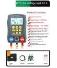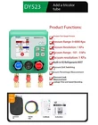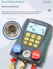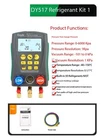 Digital Refrigerant Gauge, Air Conditioning, Refrigerant Charging Pressure Gauge Temperature measurement units: °C (Celsius); °F (Fahrenheit) Temperature measurement range: -40 to 150°C (-40 to 302°F) Temperature measurement resolution: 0.1°C (-40 to 99.9°C); 1°C (100 to 150°C); 0.1°F (-40 to 99.9°F); 1°F (100–302°F) Temperature measurement accuracy: ±0.5°C + 2 digits; ±0.9°F + 2 digits Dimensions: 170 x 110 x 50 mm Weight: 950 g