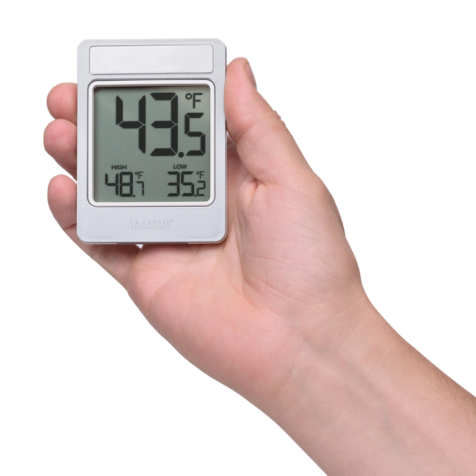 Compact and to the (decimal) point, the Digital Window Thermometer’s transparent LCD design doesn’t ruin your view. Intuitive controls and an effortless mounting application ensure a quick setup, allowing you to keep an eye on the weather while staying up to date with the outside temperature and daily high/low records. This thermometer is willing to be on the outside looking in for your convenience. COMPACT & TO THE POINT – Large easy-to-read digits to the decimal point. SEE RIGHT THRU IT – LCD display is as transparent as the readings. IT TRACKS – Records and updates the highs and lows throughout the day. OUTSIDE LOOKING IN – Lives across the pane so you know when it’s ready to go out. A BRAND YOU CAN TRUST – Family-owned since 1983, a world leader in atomic time and weather instruments, and designed in Wisconsin, our products have unmatched support resources, including printed manuals, video tutorials, and a USA-based support team.