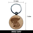 Dije de etiqueta de llavero redondo con cabeza de gallo salvaje grabado en madera