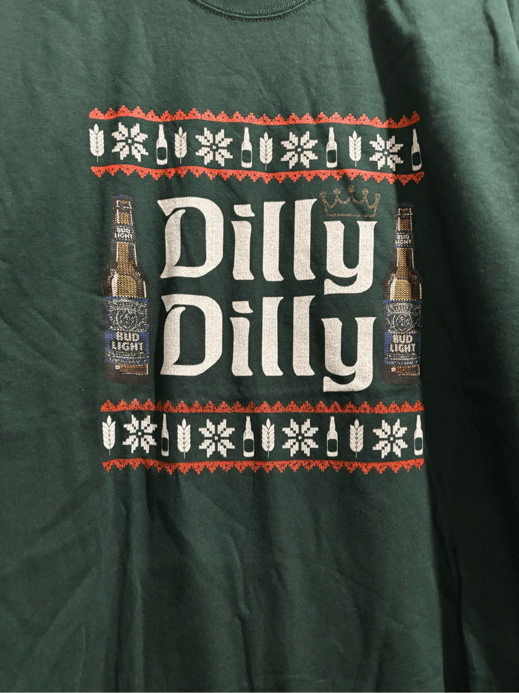 Dilly Dilly Bud Light Christmas T-shirt size Large Color-Green New in Bag
