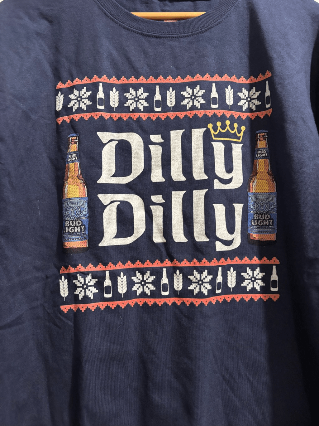 Dilly Dilly Bud Light Holiday Tee Large Festive Beer Lover Shirt