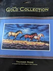 Add a touch of elegance to your home decor with this Dimensions The Gold Collection Thunder Ridge COUNTED CROSS STITCH KIT 3853. The kit includes everything you need to create a beautiful framed picture of wild horses running at dusk. The kit features half stitch and cross stitch techniques, making it a perfect project for anyone who loves to work on counted cross stitch kits. The kit includes a needle, multi-color chart, fabric/cloth, thread/floss, and everything else you need to create a stunning piece of art. This kit is classified as a counted cross stitch kit and is perfect for anyone who loves to work on such projects. The Thunder Ridge Wild Horses model is a great addition to any collection and will make your home decor stand out.