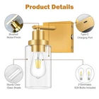 Dimmable Battery Operated Wall Sconce Set of 2, Gold Wireless Rechargeable Wa...