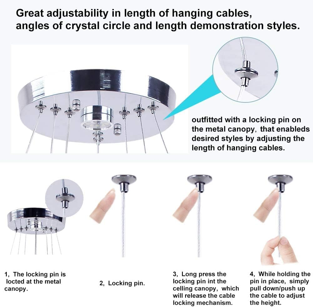 This stunning chandelier instantly elevates any room with its modern three-ring design and sparkling crystal accents. The dimmable LED lights create the perfect ambiance, while the remote control makes adjusting brightness effortless. The sleek stainless steel finish adds a luxurious touch, and the adjustable height ensures it fits beautifully in bedrooms or living rooms. Installation was straightforward, and the quality feels premium—definitely worth the investment for a stylish upgrade!