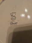This dinner plate is made by Gibson China and crafted from porcelain. It features a beautiful hand-painted design, adding a touch of elegance to any dining table. The plate is manufactured in China, known for its longstanding tradition of producing high-quality porcelain products. Perfect for serving meals or displaying as decorative dinnerware, this Gibson dinner plate is sure to impress with its intricate design and craftsmanship.