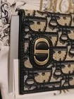 Comes with Dior Dust Bag, Box, Tags, Authenticity Card Brand New Condition Wallet & passport holder perfect for travel and every day. 3.7 x 5.8 x 1.0 inches (Length x Height x Width) Blue Leather and Fabric Dior embossed logo Gold color Hardware. Cowhide-leather lining Open slot for passport 3 card slots & 2 Additional Slots Made in France.