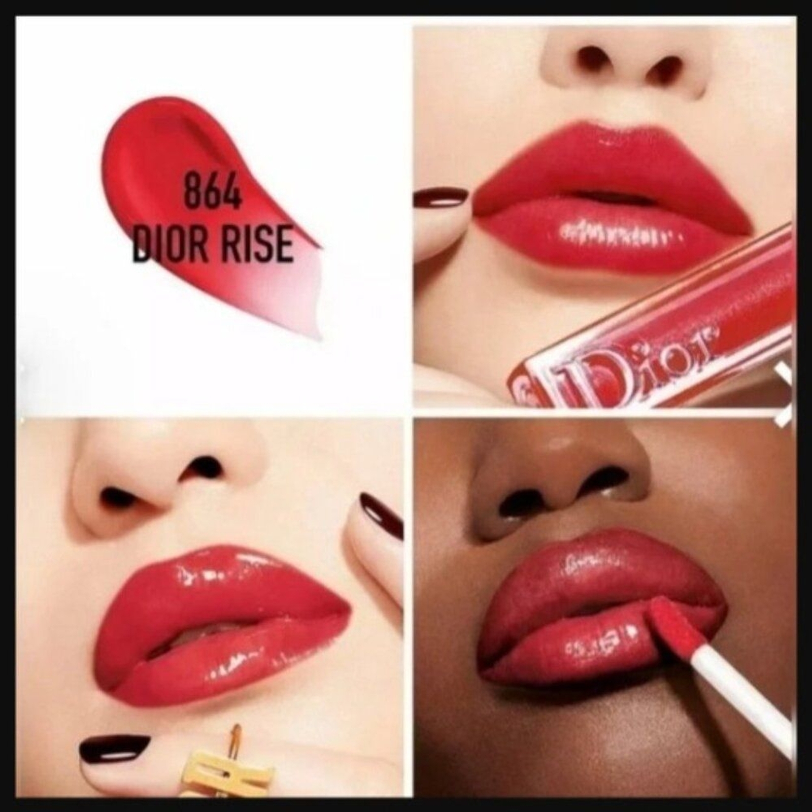 NEW without Box, unused. Color: 864- Dior Rise Size: 0.17 oz Full Size Unused Combines the exceptional shine of a gloss with the comfort of a balm - Forms an incredibly fine & comfortable film on lips - Provides 24 hours of hydration for smoothed, nourished lips - Contains extremely soft fibers with ultra loading power - Creates an ultra-glossy pout with plumping shine - Ultra-soft applicator perfectly hugs the shape of the lips & delivers the perfect dose in just one precise swipe. No box