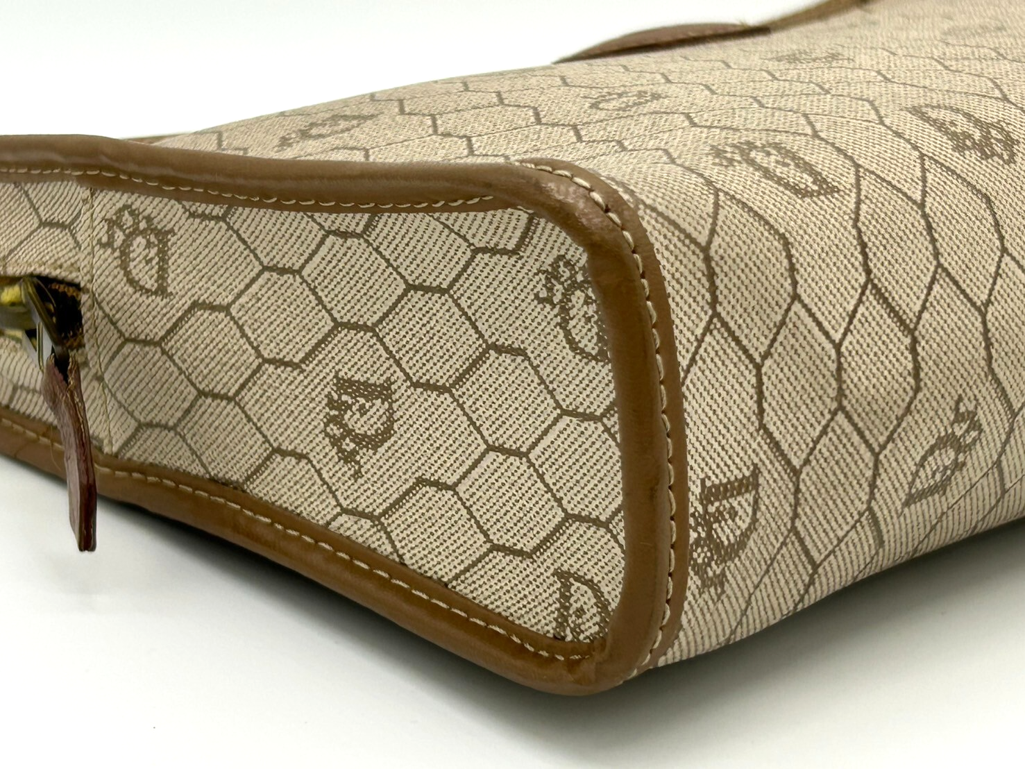 This clutch is absolutely stunning! The honeycomb pattern is so chic and the beige color is incredibly versatile. It arrived in fantastic pre-loved condition, just as described. The quality is impeccable and it feels so luxurious to carry. A perfect addition to my collection!