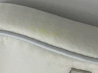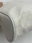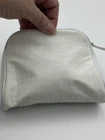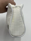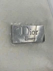 Dior makeup pouch/ sm bag…new without tags. Protective film over metal logo tag. Yellow Stain to side of bag, (as photographed) I did not try to remove. CD charm on zipper pull