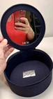 Dior Beauty Cosmetic Travel Case Round Mirror Zippered Pouch Recycled Cotton Navy Condition: New without tags, excellent condition with no visible flaws or stains, zipper works perfectly, mirror is intact and clear. Features Dior logo (protective covering still in place over logo on lid) on top of lid and on the interior mirror, classic round shape, sturdy structure, zip-around closure for secure storage. Body material: 100% recycled cotton Lining: 100% recycled cotton Color: Navy with silver Dior logo plaque Includes large round mirror integrated inside the lid for convenience Perfect for storing cosmetics, makeup, toiletries, travel essentials, or jewelry Measures approximately 8 inches diameter and 4 inches tall Tag reads: Dior Beauty C800500497, Made in China, cotton coming from recycled material From Parfums Christian Dior – 33, avenue Hoche, 75008 Paris, France