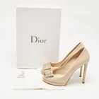 Make a chic style statement with these designer pumps. They showcase sturdy heels and durable soles, perfect for your fashionable outingsCertified by The Luxury Closet - This item has gone through a detailed authentication process overseen by our experts. We offer a lifetime guarantee of authenticity on all our items. Import duties, taxes and charges are not included in the item price. These charges are the buyers responsibility. Please check with your country’s customs office to determine what these additional cost will be prior to buying. Our eBay Store About Us Contact Us Add to Favorite Sellers Dior Beige Leather Cannage Plaque Peep Toe Platform Pumps Size 38 $225.5 Make a chic style statement with these designer pumps. They showcase sturdy heels and durable soles, perfect for your fashionable outings Product Details Brand Color Beige Dimensions Material Leather Size 38 Outsole Width 7.5 cm Outsole Length 21.5 cm Heel Height 12 cm Includes Original Dustbag, Original Box Certified by The Luxury Closet This item has gone through a detailed authentication process overseen by our experts. We offer a lifetime guarantee of authenticity on all our items. How We Check The in-house team of experts at The Luxury Closet is highly trained to verify the authenticity and the condition of the luxury products. They ensure that only 100% authentic items are put on sale.The evaluation process is unique with its own mix of assessment criteria and differs according to the category. Each item is evaluated based on the following combination of hallmarks, hardware, stitching, symmetry, material, craftsmanship, stamping, codes, hologram stickers, and packaging. Our authenticators also check if the items have been modified or amended (e.g., aftermarket diamonds, replaced batteries, repaired bags, etc.) International Buyers Import duties, taxes and charges are not included in the item price. These charges are the buyers responsibility. Please check with your country’s customs office to determine what these additional cost will be prior to buying.
