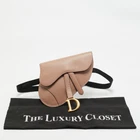 This pre loved Dior Saddle Belt Bag can be worn crossbody or at the waist. Crafted from beige leather with gold tone hardware, it carries the house’s signature curve.Certified by The Luxury Closet - This item has gone through a detailed authentication process overseen by our experts. We offer a lifetime guarantee of authenticity on all our items. Import duties, taxes and charges are not included in the item price. These charges are the buyers responsibility. Please check with your country’s customs office to determine what these additional cost will be prior to buying. Our eBay Store About Us Contact Us Add to Favorite Sellers Dior Beige Leather Saddle Convertible Belt Bag $1272.7 This pre loved Dior Saddle Belt Bag can be worn crossbody or at the waist. Crafted from beige leather with gold tone hardware, it carries the house’s signature curve. Product Details Brand Color Pink Dimensions Material Leather Size Outsole Width Outsole Length Heel Height Includes Certified by The Luxury Closet This item has gone through a detailed authentication process overseen by our experts. We offer a lifetime guarantee of authenticity on all our items. How We Check The in-house team of experts at The Luxury Closet is highly trained to verify the authenticity and the condition of the luxury products. They ensure that only 100% authentic items are put on sale.The evaluation process is unique with its own mix of assessment criteria and differs according to the category. Each item is evaluated based on the following combination of hallmarks, hardware, stitching, symmetry, material, craftsmanship, stamping, codes, hologram stickers, and packaging. Our authenticators also check if the items have been modified or amended (e.g., aftermarket diamonds, replaced batteries, repaired bags, etc.) International Buyers Import duties, taxes and charges are not included in the item price. These charges are the buyers responsibility. Please check with your country’s customs office to determine what these additional cost will be prior to buying.